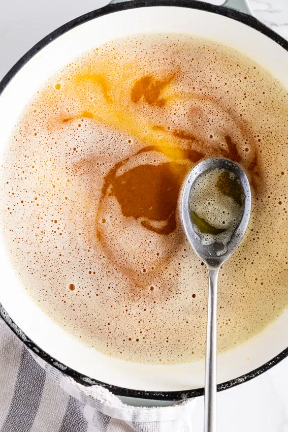 - Swirl, don’t stir constantly. Gentle swirling helps the milk solids toast evenly without disturbing the process too much. You don’t need to whisk or stir aggressively.