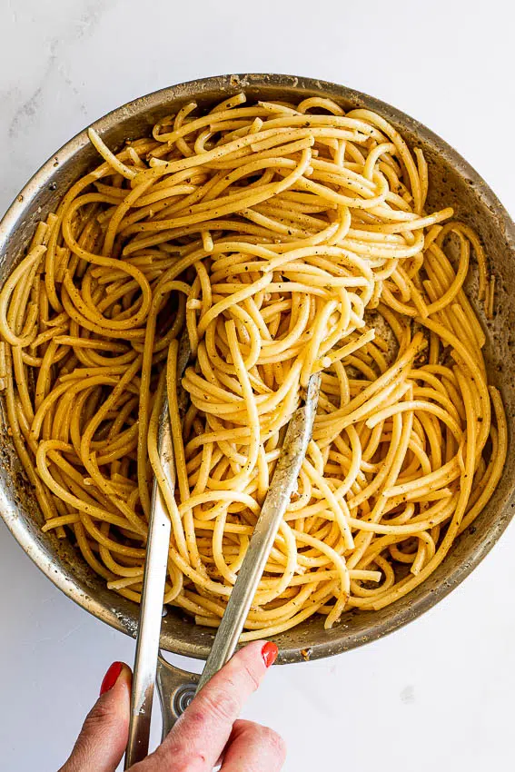 Bucatini cacio e pepe is the perfect 15-minute meal. So simple, so delicious made with a handful of pantry staples you already have in your kitchen.