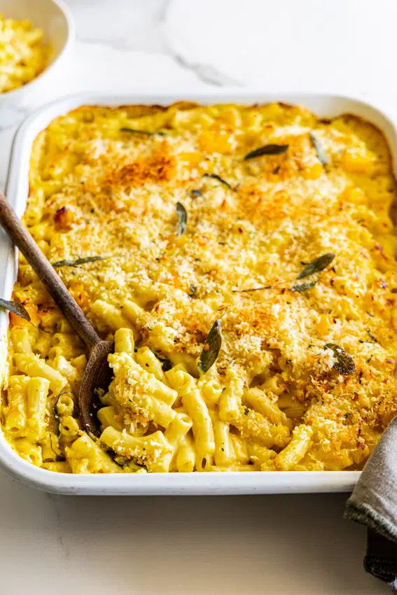 The addition of butternut squash puree adds subtle sweetness to the classic sauce. A hefty amount of cheese compliments the butternut squash and the crispy topping adds great texture, however it is optional and can be substituted with a layer of cheese if you prefer.