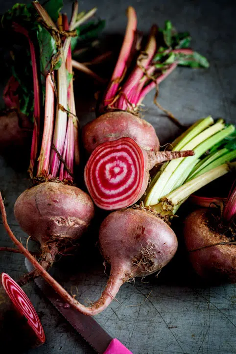 - 2-3 candy-stripe beetroot peeled and very thinly siced