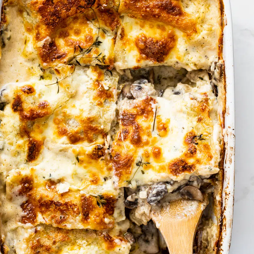 Lasagna is the kind of food I crave often but as it is so labor-intensive, I don’t tend to make it. With this creamy mushroom version, there’s no excuses though. Mushroom lasagna takes minutes to assemble before baking until golden and bubbling and is any mushroom-lover’s dream meal. The layers of garlic-herb scented mushrooms, al dente pasta sheets and creamy sauce make this the perfect meat free comfort food.