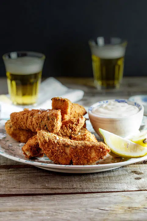 - Serve the fish fingers with the aioli and extra lemon wedges.