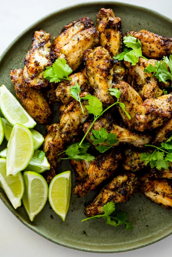 - Serve: Serve the chicken wings scattered with coriander/cilantro and extra lime wedges.