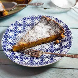 - Pour the filling into the prepare shell and bake for 10 minutes until the edges of the filling has set but the centre is still slightly jiggly.