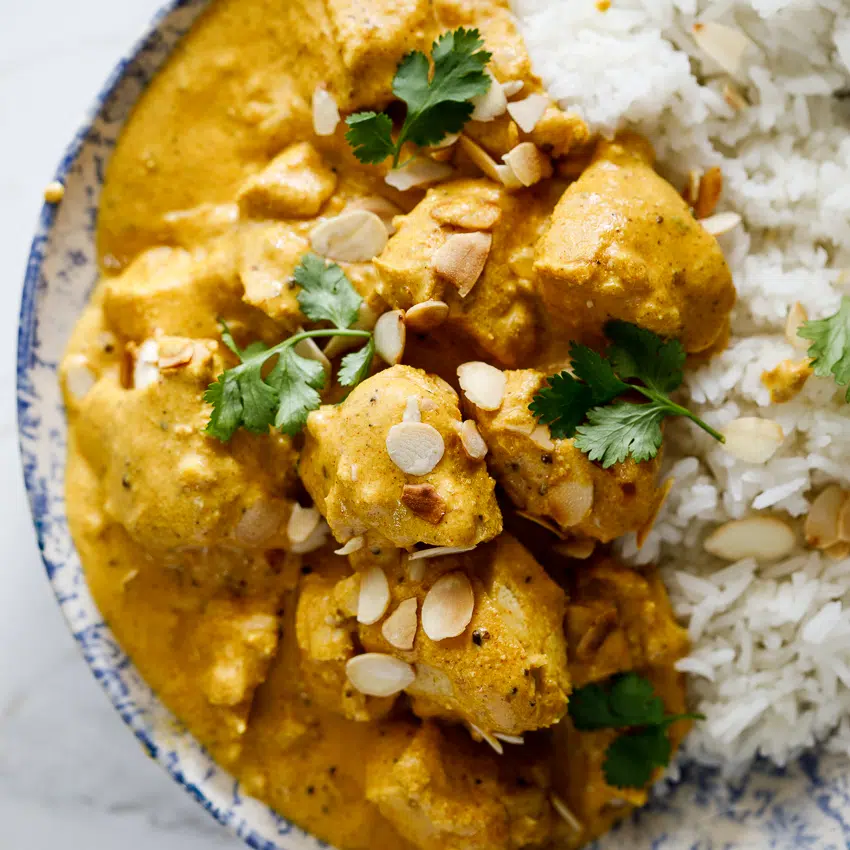 Mughlai chicken is the perfect creamy curry recipe. Made with almonds, spices and aromatics, this curry is a guaranteed crowd favorite. If you love korma, you’re going to LOVE this version.