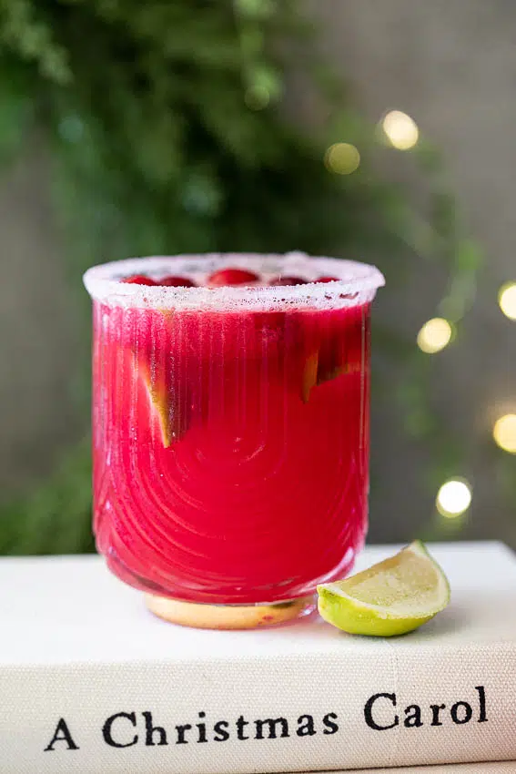 Easy cranberry margaritas brings the fiesta to your holiday parties. Made with fresh lime, a delicious cranberry syrup and a good glug of tequila, this festive cocktail is guaranteed to be a crowd pleaser this Christmas.