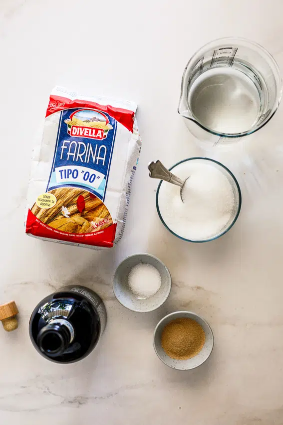 - Flour. I’ve made this using 00-flour, regular bread flour and a combination of all-purpose and bread flour. The 00-flour and bread flour produce a chewier loaf but the all purpose flour is still delicious and great if that’s the only flour you have.