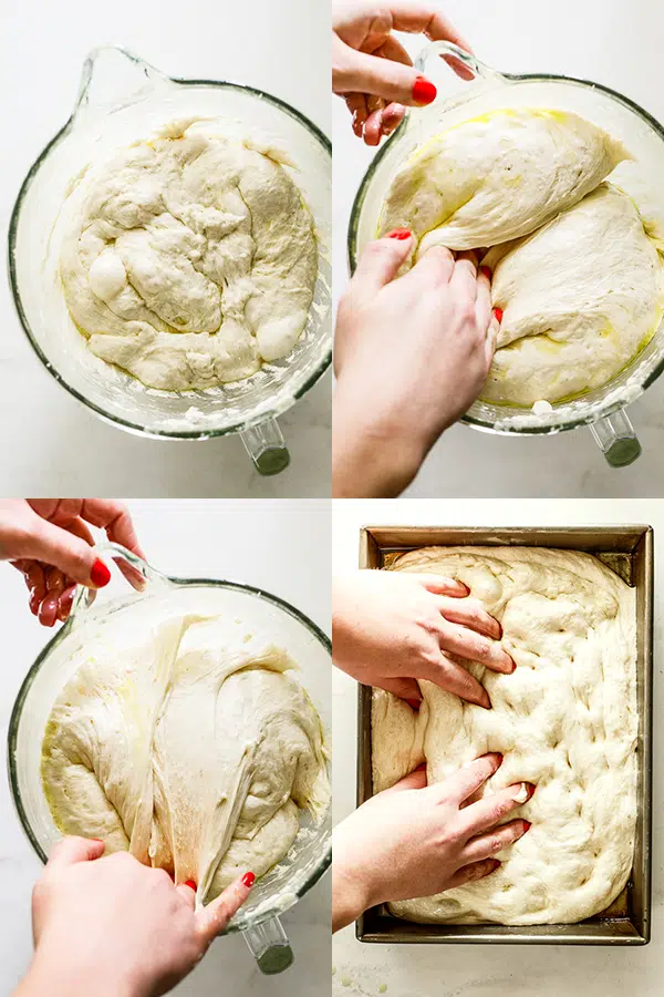 Yes! Focaccia is one of the easiest breads to make at home. The dough is very forgiving – it’s wet and sticky, so there’s no kneading required. You just mix, let it rise, fold it a few times, shape it in the pan with your fingers and bake. Even if you’ve never made bread before, you can make incredible focaccia. The overnight rise does most of the work for you, developing flavor while you sleep.