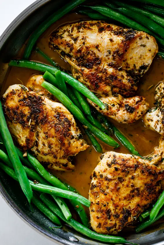 - Allow to simmer for a few minutes then add the chicken back into the pan. If you would like to add vegetables, add par-cooked green beans, broccoli, kale or sugar snap peas into the pan with the chicken.