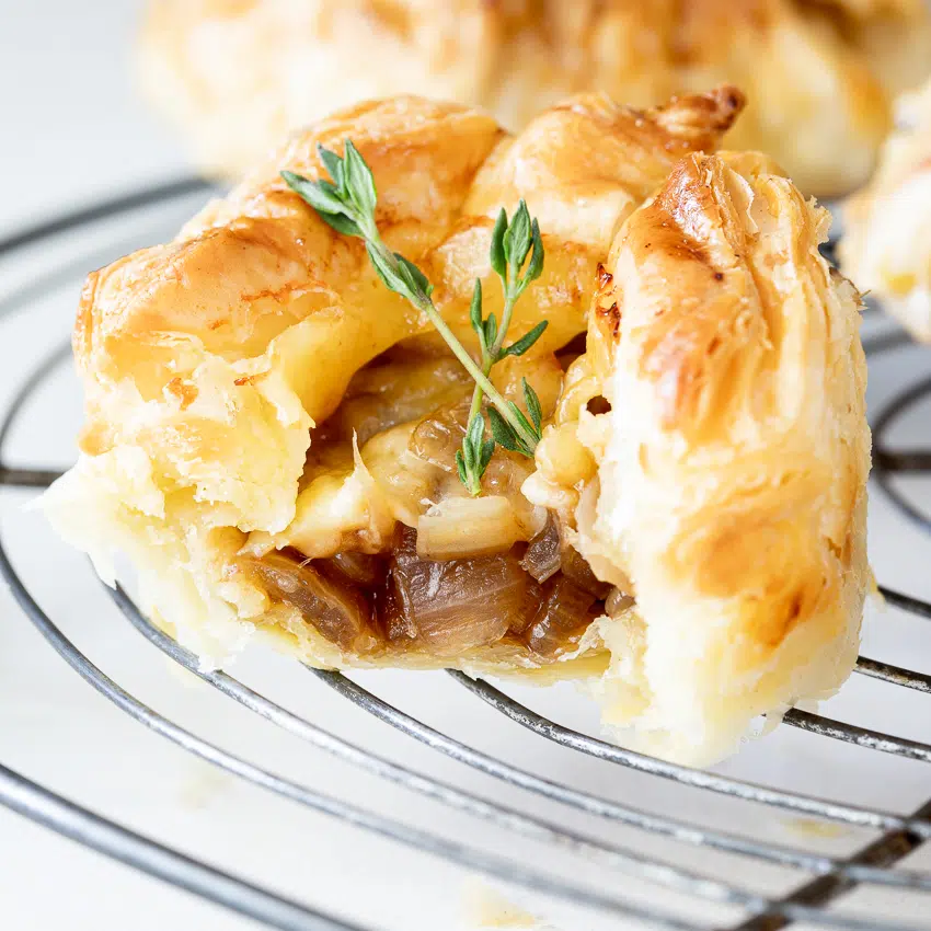 The sweetness of the onions with the Gruyère encased in buttery pastry is the stuff dreams are made of. Perfect balance in every bite. It is the perfect canapé to serve with drinks and can be fully prepped ahead so great for festive parties.
