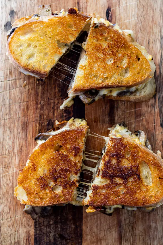 - Extras: Adding slices of smoked ham, crispy bacon or in this case, garlic butter mushrooms means that you take your sandwich from good to great. Even adding herbs like basil will transform a simple grilled cheese.