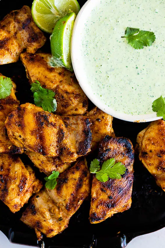This chicken is delicious served with anything from rice to crispy smashed potatoes. A simple tomato salad is also a great side dish and my grilled corn avocado salad will also be great with the grilled chicken.