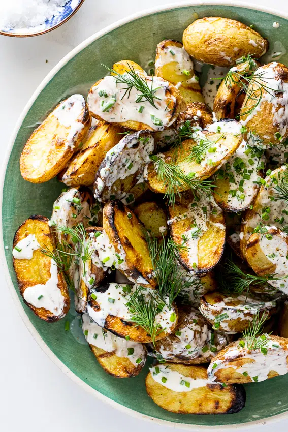 Grilled potato salad with sour cream dressing