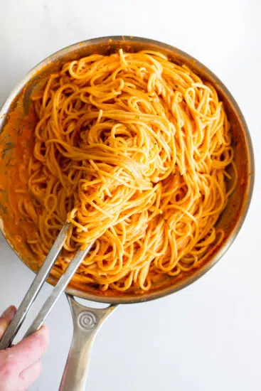 This tomato sauce is perfect in a variety of dishes. It’s great as a simple pasta sauce served with spaghetti and it makes a great pizza sauce. Add it to ground beef when making lasagna or use it in dishes like baked meatballs, eggplant involtini, cheese and tomato pasta bake or pork sausage meatballs.