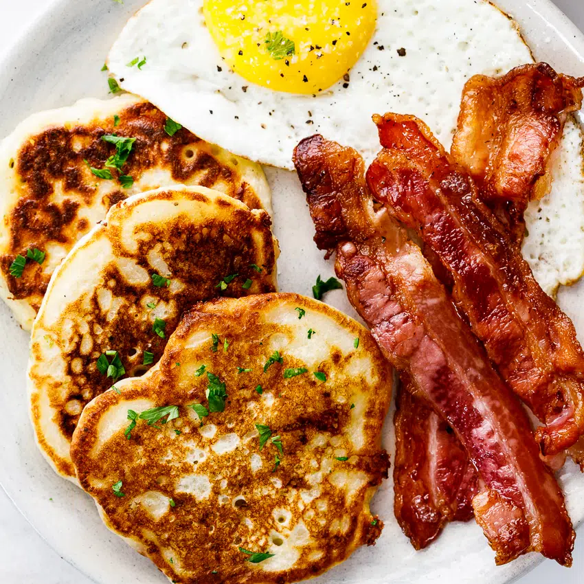 - Serving suggestions: Serve them for breakfast or brunch with crispy bacon and a perfectly fried egg. They will also make delicious appetizers topped with sour cream and chives or a small dollop of caviar if you’re being fancy.