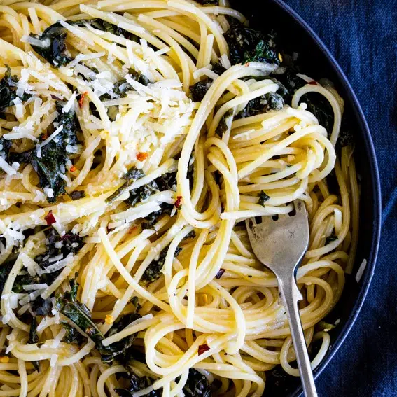 This lemon parmesan kale pasta with simple white wine sauce is ridiculous easy and so delicious. Perfect for weeknights or when you need something light.