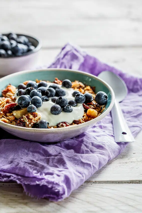 Having a big tub of home-made granola is always handy, it keeps for ages and is great for a quick, filling breakfast. I like to serve it very simply with creamy Greek yoghurt and a few berries but this granola will work just as well in my Berry breakfast parfaits for something a little fancier.
