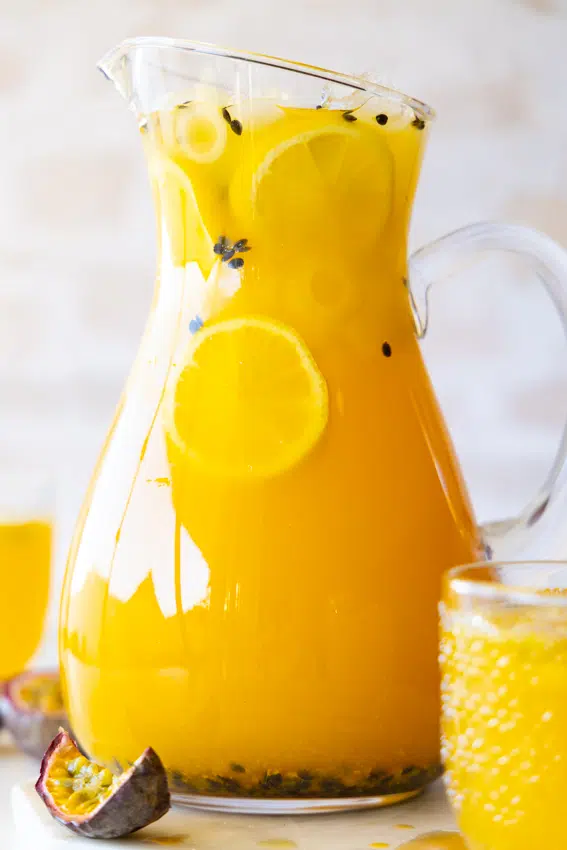 Get ready to level up your usual lemonade. This passion fruit lemonade recipe is the perfect summer drink. Delicious, easy to make and so refreshing!