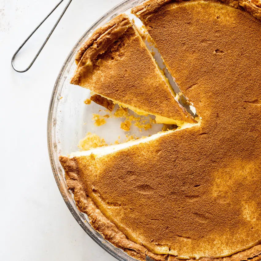 Milk tart is sweet and creamy with a crisp sweetened crust. The cinnamon and vanilla combine to create a super comforting dessert.