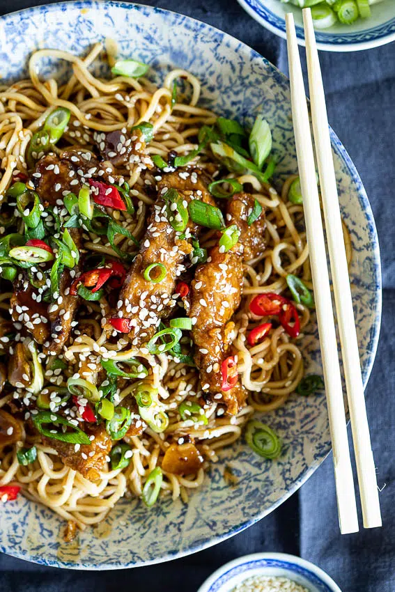 Sticky chilli beef fried until crisp and juicy and served with noodles or rice is the perfect, easy family dinner recipe.