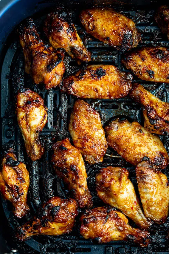 To cook, place the wings in the basket of an air fryer then cook at 200ºC/390ºF for 15-20 minutes, turning half way. The chicken wings should be caramelized and cooked through. Remove from the air fryer then serve with roasted peanuts (optional), finely chopped spring onions/green onions and chopped chilli.