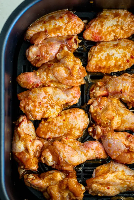 - To cook, place the chicken wings in a single layer in the basket of an air fryer.