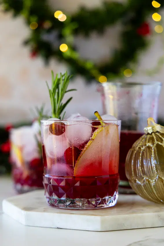 This easy Christmas Mocktail made with cranberries, pear juice and ginger is the perfect festive drink.