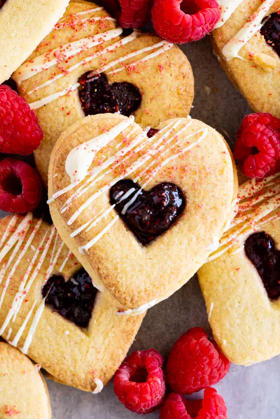 These adorable Valentine’s Day Cookies, sandwiched with sweet raspberry jam are the perfect treat for a loved one and are fantastic for gifting.
