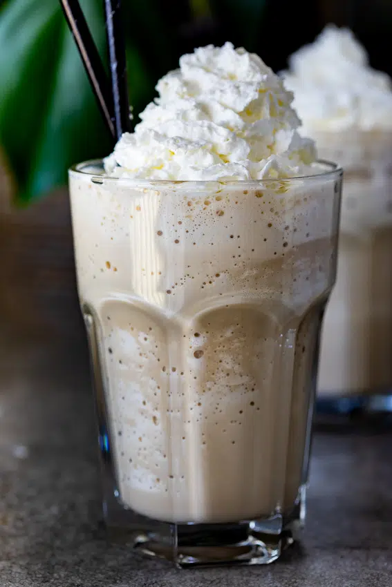 Iced coffee is taken up a notch with this easy Vietnamese iced coffee frappé. You only need three ingredients and a blender to have this delicious treat.