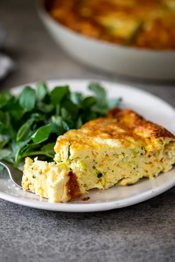 This easy zucchini and feta crustless quiche is a delicious vegetarian recipe for any time of the day and perfect with a side salad as a light meal.